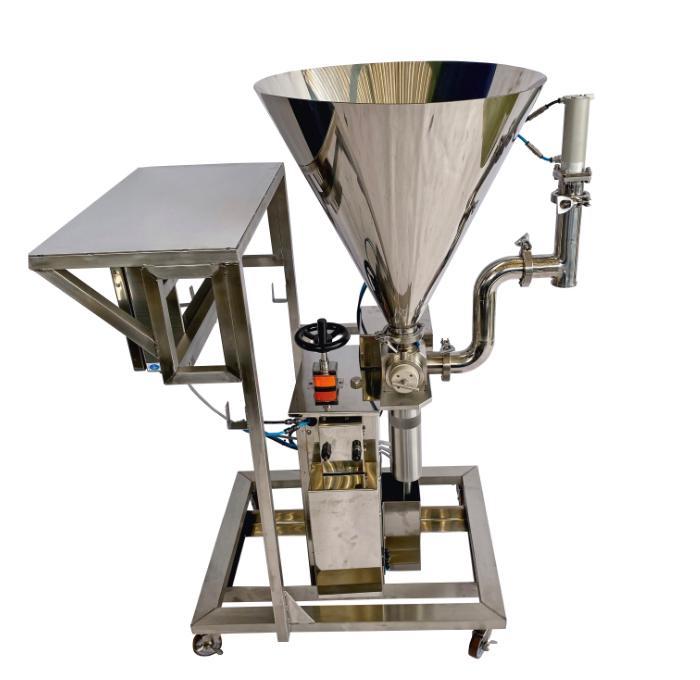 流動性のあるものはタンク(ホッパー)を上につけて充填はもちろん下から吸い上げて充填する形も可能です。