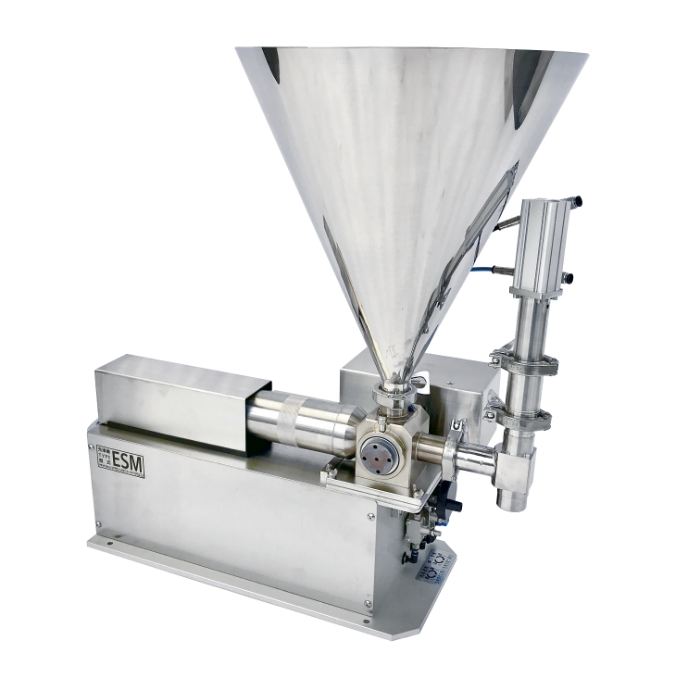 流動性のあるものはタンク(ホッパー)を上につけて充填はもちろん下から吸い上げて充填する形も可能です。
